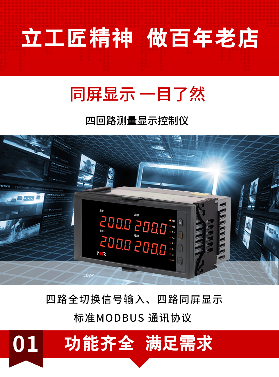 虹潤公司是專業(yè)生產(chǎn)多路溫度巡檢儀的國家專精特新“小巨人”企業(yè),生產(chǎn)的四回路測量顯示控制儀,具有四路同屏顯示,全切換信號(hào)輸入,數(shù)學(xué)運(yùn)算功能,多種輸出類型,RS485/RS232通訊等特點(diǎn)。產(chǎn)品獲得巡回檢測顯示方法及裝置、儀表殼體等2項(xiàng)國家發(fā)明專利,主持起草工業(yè)過程控制系統(tǒng)用模擬輸入兩位或多位輸出儀表、物聯(lián)網(wǎng)智能溫度儀表通用技術(shù)條件等2項(xiàng)國家標(biāo)準(zhǔn),以及通信系統(tǒng)多通道數(shù)據(jù)采集控制終端規(guī)范軍用標(biāo)準(zhǔn),參與國際5G標(biāo)準(zhǔn)制定,取得四回路測量顯示控制儀等3項(xiàng)相關(guān)軟件著作權(quán)。產(chǎn)品廣泛應(yīng)用于電力、石化、冶金、制藥、水處理、機(jī)械配套等各種工業(yè)現(xiàn)場。