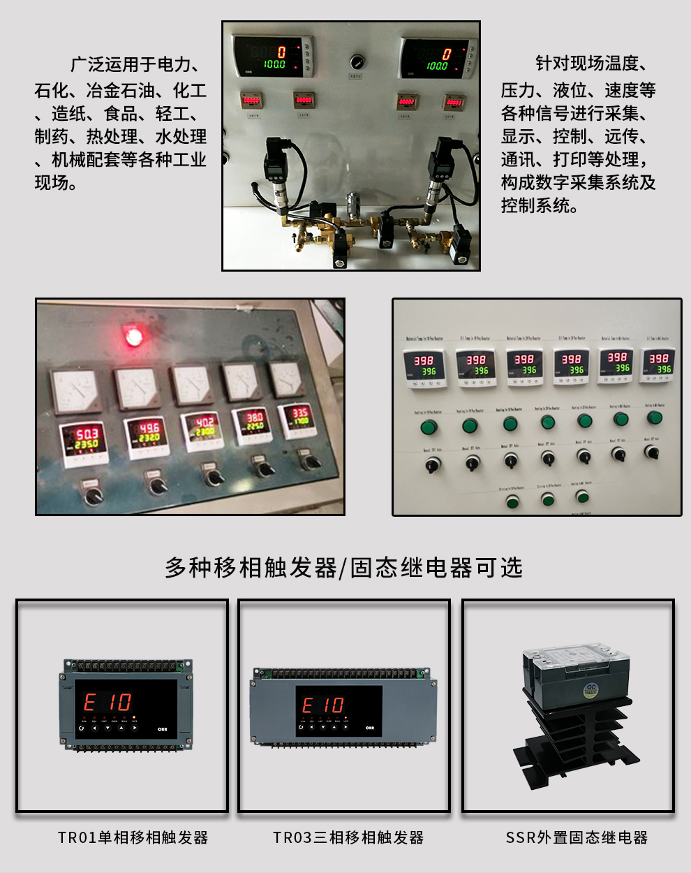OHR-TR30系列移相觸發(fā)器是應(yīng)用了單片機(jī)技術(shù)的智能化單/三相移相觸發(fā)器,功能強(qiáng)大且可靠性高,能適應(yīng)各種 電阻絲、硅碳棒及負(fù)載采用變壓器降壓的硅鉬棒、鎢絲等各種類型工業(yè)電爐,也可用于電機(jī)軟啟動(dòng)的控制。